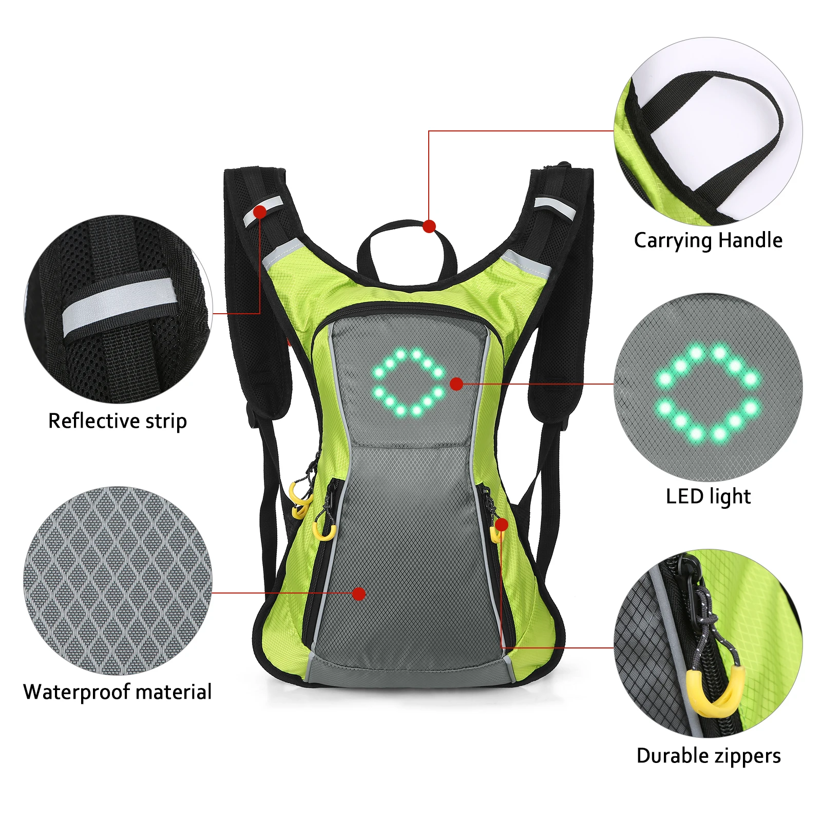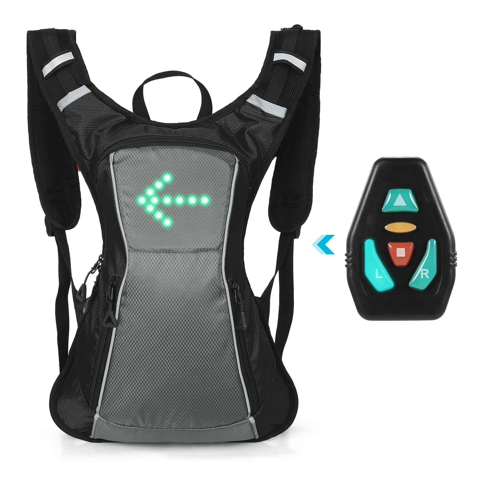 This waterproof backpack is equipped with reflective strips and LED lights which will respond to signal received from remote controller, reminding passengers and drivers keep distance from you. Built-in 500mAh rechargeable battery. It can work 20 hours of continuous work after 2 hours full charging. Absolutely a perfect add-on for night safety cycling.