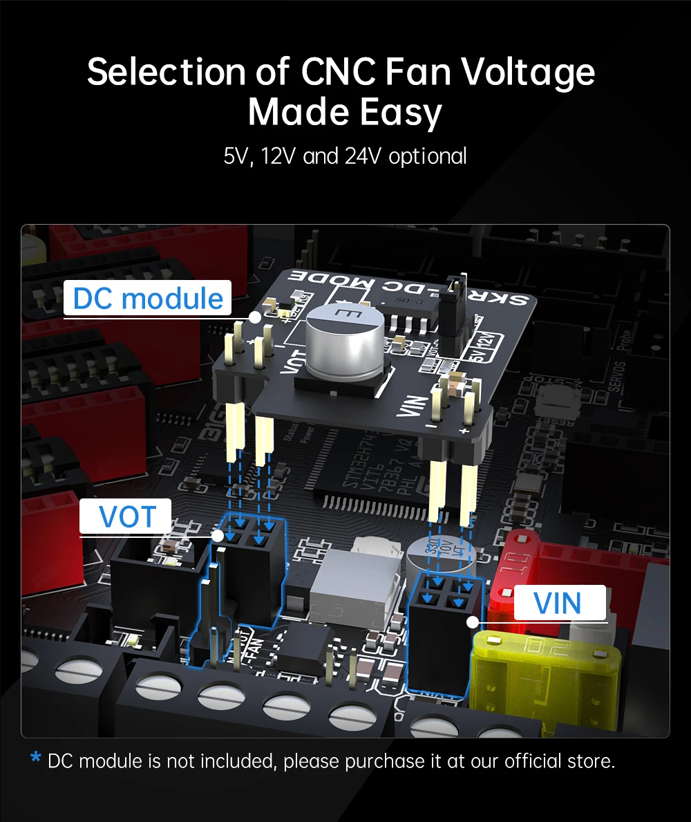 19.Каждый модуль привода двигателя может выбрать соответствующее напряжение двигателя через колпачок перемычки.