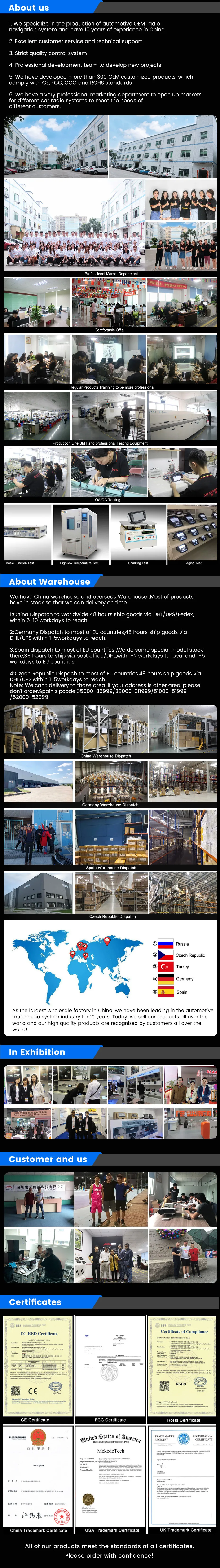 2. Наша цель-продолжать усердно работать, чтобы сделать инновационное оборудование и программное обеспечение автомобильного мультимедийного плеера радио, чтобы дать вам индивидуальный опыт. Все продукты прошли строгий контроль качества перед отправкой, убедитесь в высоком качестве. Мы предоставляем обновления для прошивки, программного обеспечения, пользовательского интерфейса, gps-навигационных карт бесплатно.