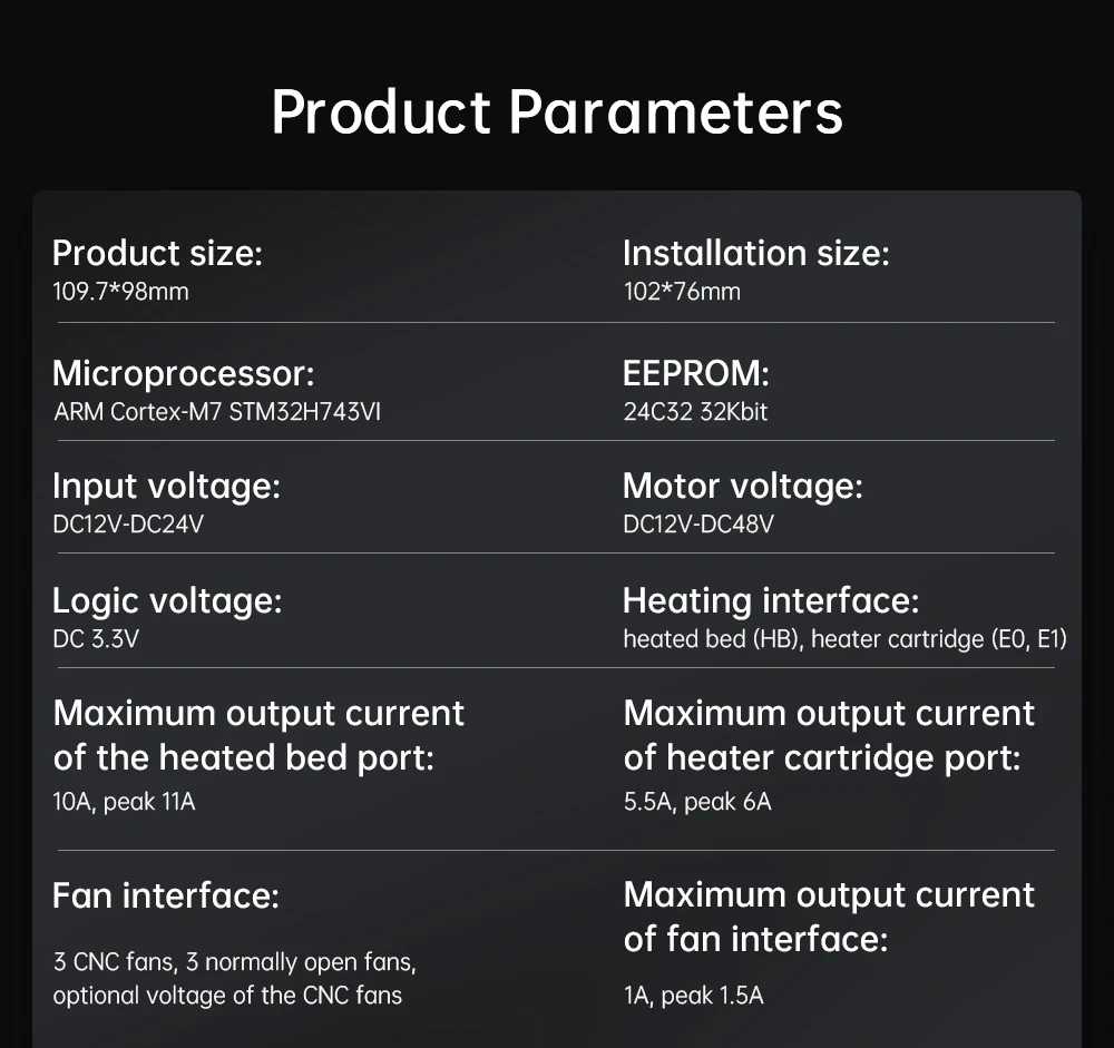 1. Используя 32-разрядный ARM Cortex-M7 серии STM32H743VIT6 основной чип управления с основная частота 480 МГц, производительность значительно улучшен.