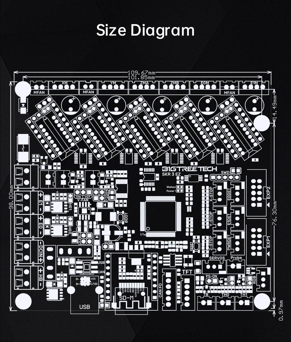 BIGTREETECH СКР 3 EZ V1.0 материнская плата представляет собой 32-битный 3D материнская плата принтера обновлен команда Шэньчжэнь Biqu Технология обратную связь о том, что вы хотите, от китайского производителя для нашей EZ серии драйвера на основе СКР 3. Он совместим с драйвером серии boththe EZ и сериями драйверов TMC.