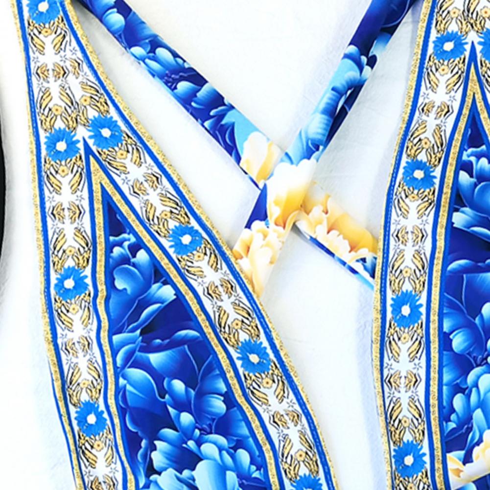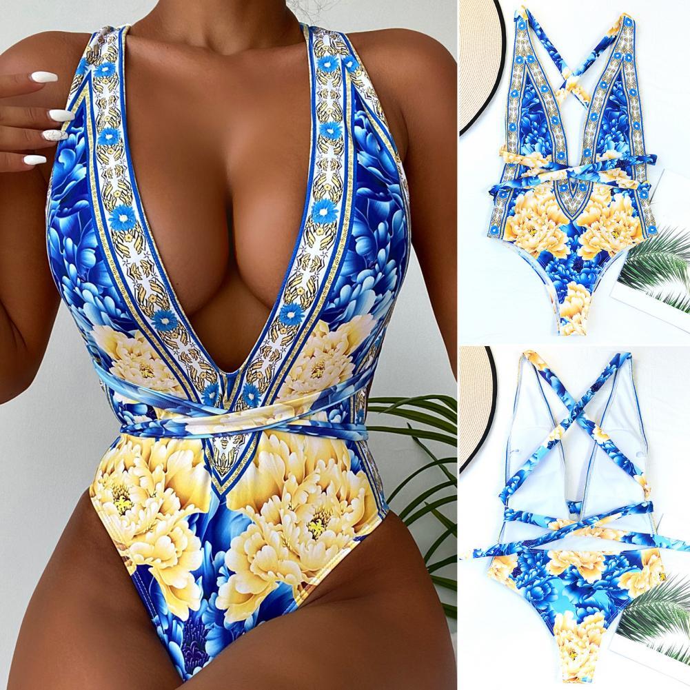 Стиль: Сексуальная подкладка: Да на косточках: без шеи: глубокий v-образный вырез тип размера: Обычный Сезон: лето Талия: высокая талия Особенности: перекрестный ремешок, открытая спина, принт