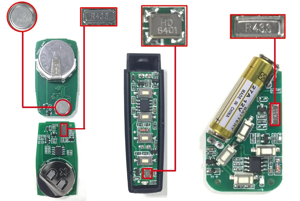 Вот как сказать частоту дистанционного управления и чип кода, как показано ниже (каждая панель дистанционного управления имеет серебристо-белый звуковой стол с круглым, прямоугольным, квадратным и т. Д.). На каждом пульте дистанционного управления есть черный чип, на нем есть модель с четким кодовым чипом.)