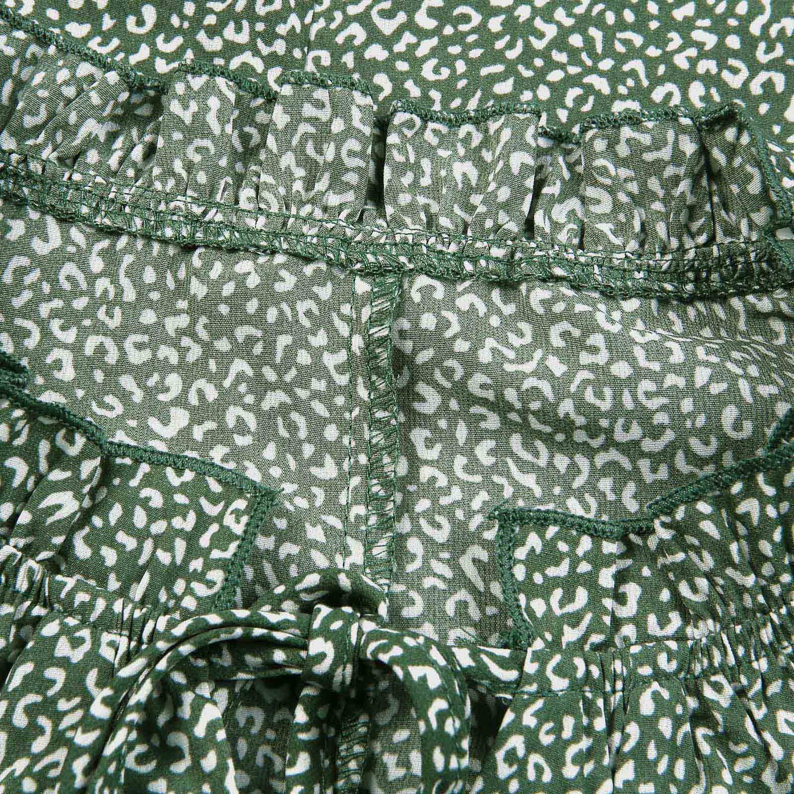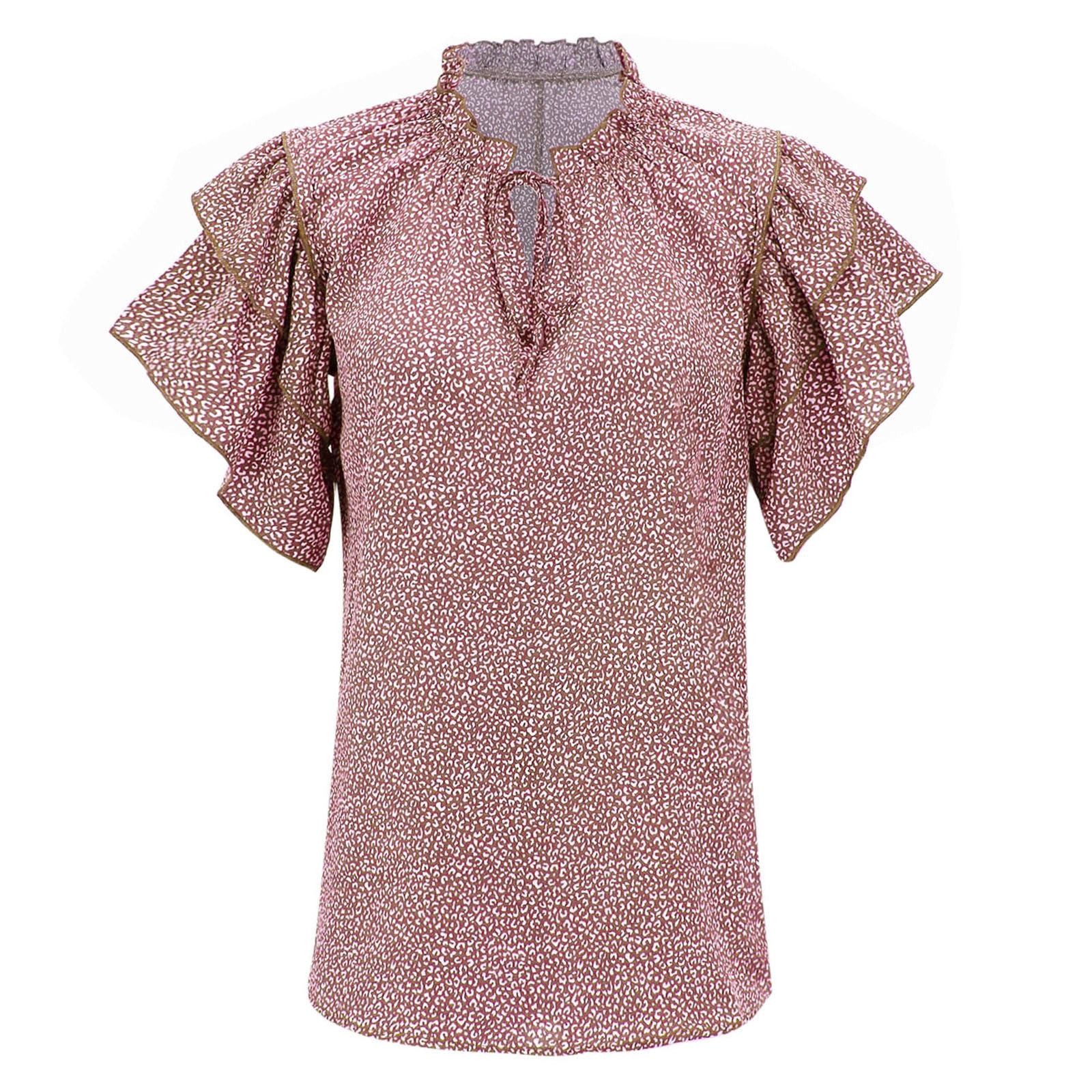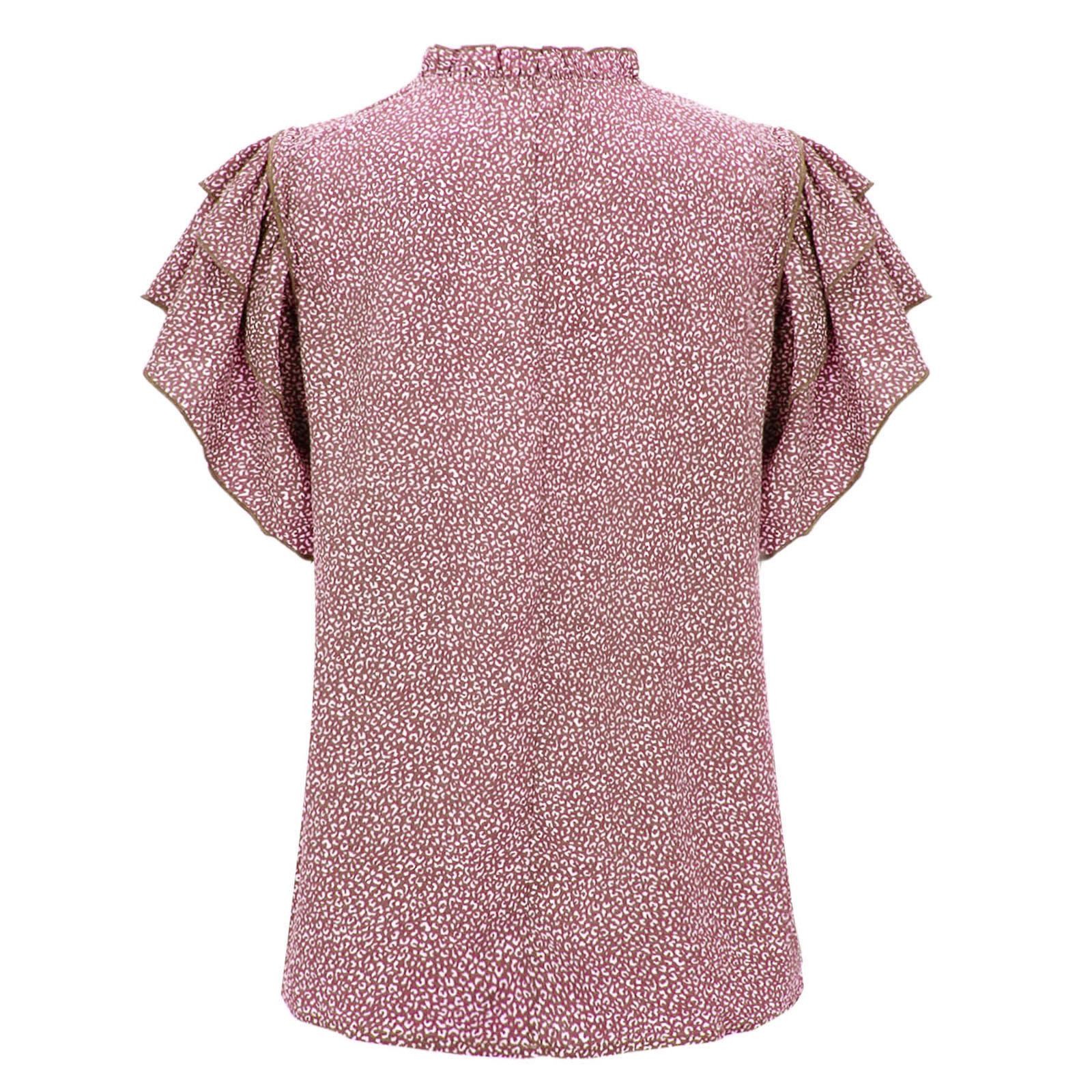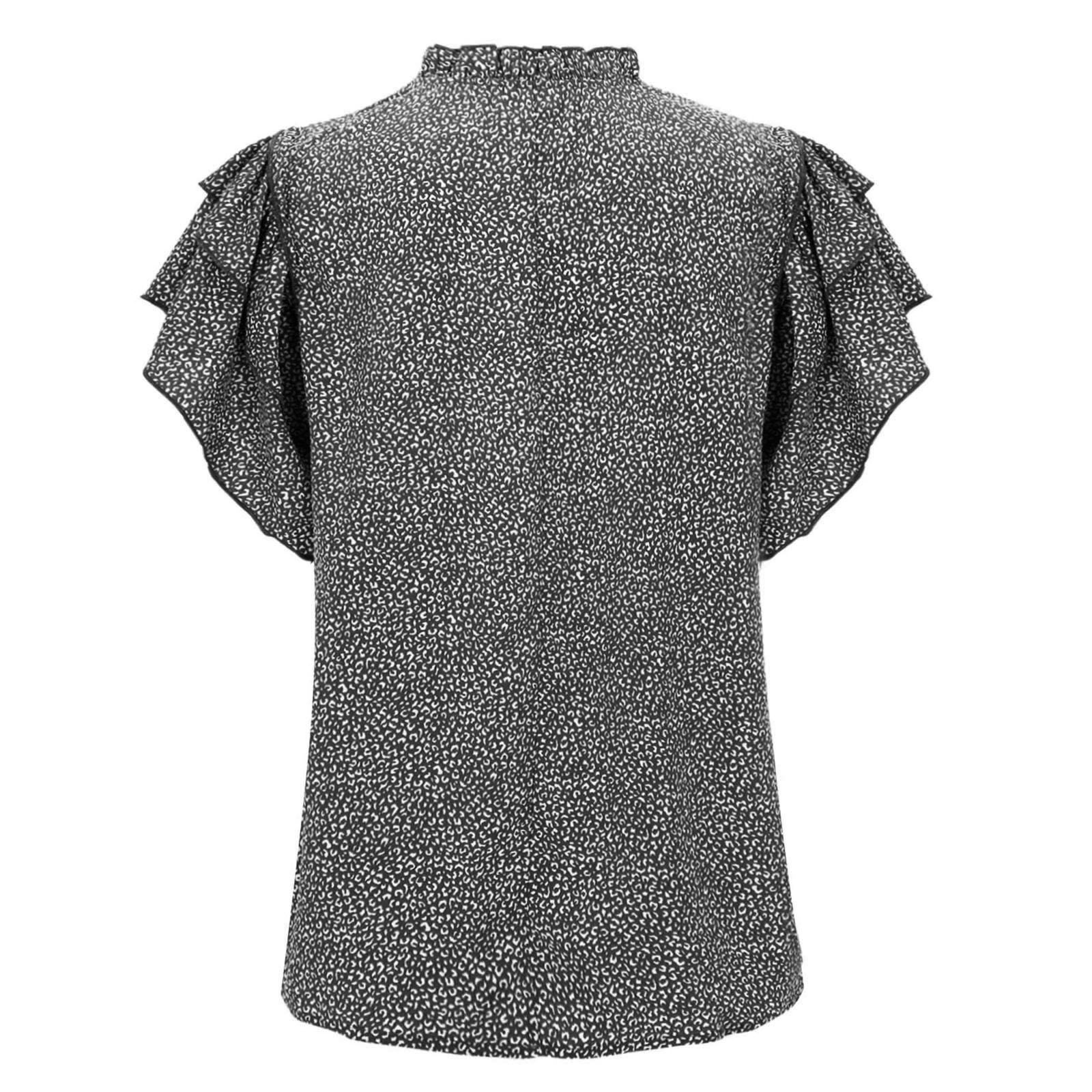 Особенности: короткие рукава, Леопардовый принт, шнуровка, v-образный вырез, расклешенные рукава, рубашка, элегантный стиль ретро.