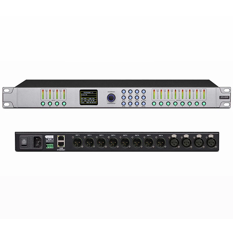 Это устройство является высокопроизводительным цифровым аудиопроцессором. Максимальная частота выборки составляет 96 кГц, И аудио собирается и обрабатывается 24 бит AD/DA аналого-цифрового/аналогово-цифровой конверсионный чип и высокой скоростью обработки чип DSP. Поддерживает до 4 аналоговых или AES/EBU входов и 8 аналоговых выходов. Каждый входной и выходной канал поддерживает 13 параметрический эквалайзер, дополнительно оборудована высоких и низких частот фильтры, генератор сигналов, гейт, контроль, вход переменного тока, выход ограничитель, сцена заданной и регулируемой до 2000 мс на канал задержки и другие мощные функции, оснащенные 100 м двумя сетевыми портами, RS-232 может осуществлять быструю конфигурацию и отладку, а также поддерживать каскад между несколькими устройствами. Проведите серию оптимизации и регулировки для высококачественной системы звукоусиления.