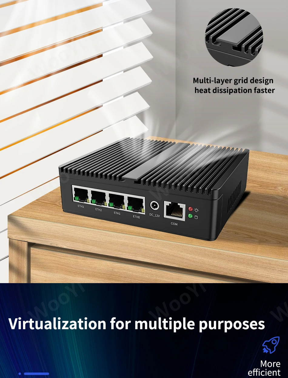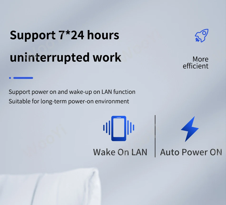 -Низкое потребление TDP только 10 Вт (N5105)/15 Вт (N5095) и может быть установлен на задней стороне монитора с помощью кронштейна VESA (опционально).