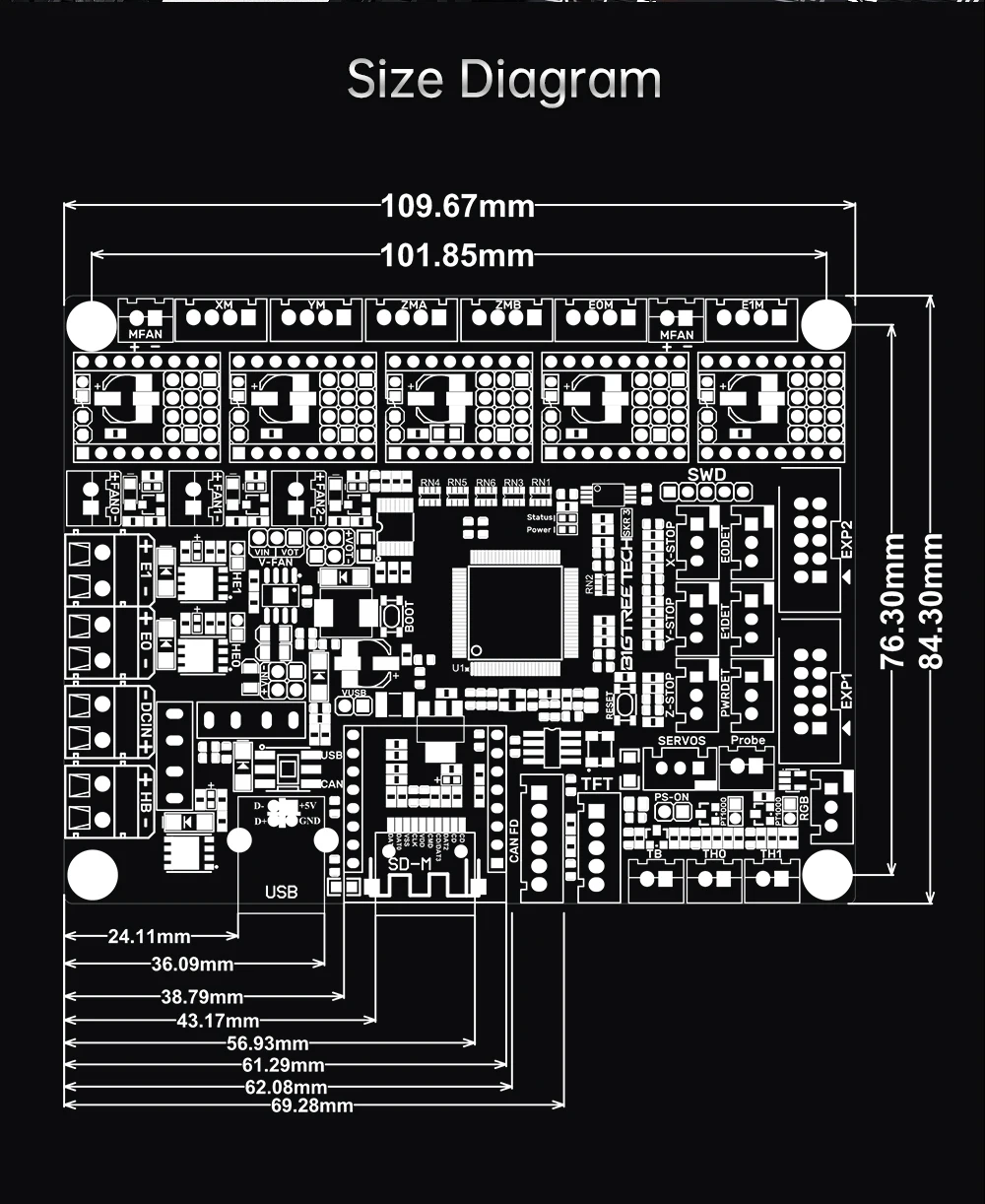 BIGTREETECH СКР 3 представляет собой 32-битный материнская плата предназначена для 3D принтер, который запущен 3D печати команда из Шэньчжэнь с изображением рождественской елки Технология обратную связь о том, что вы хотите о том, что вы хотите. Это обновление СКР V1.4/Turbo.