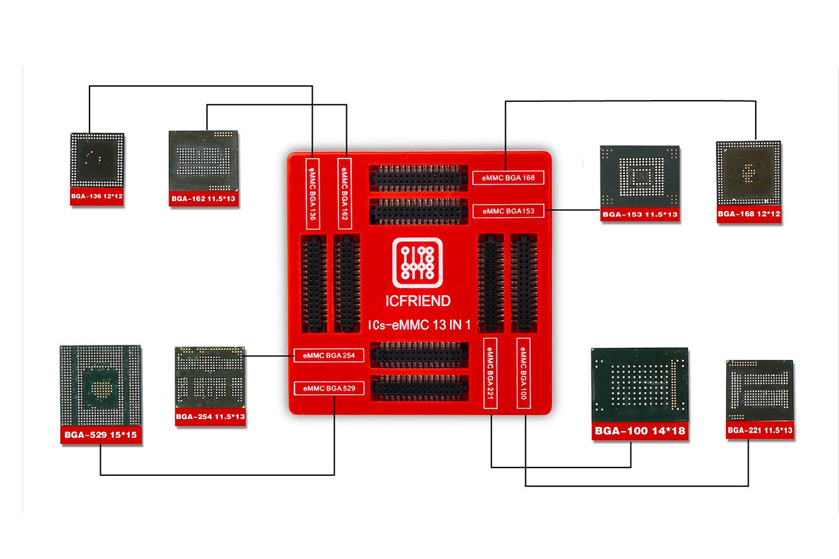 Разъем E-Mate X 13in1 EMMC BGA для easy JTAG плюс ufibox riff2 Medusa pro, поддержка BGA 100136 168 153 169 162 186 221 529 254