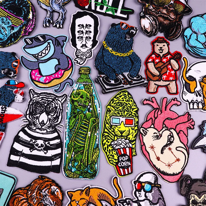 Рок животных патч утюг на вышитые нашивки на одежде крючок петля Мультфильм Животных Патчи для одежды наклейки акула аппликация
