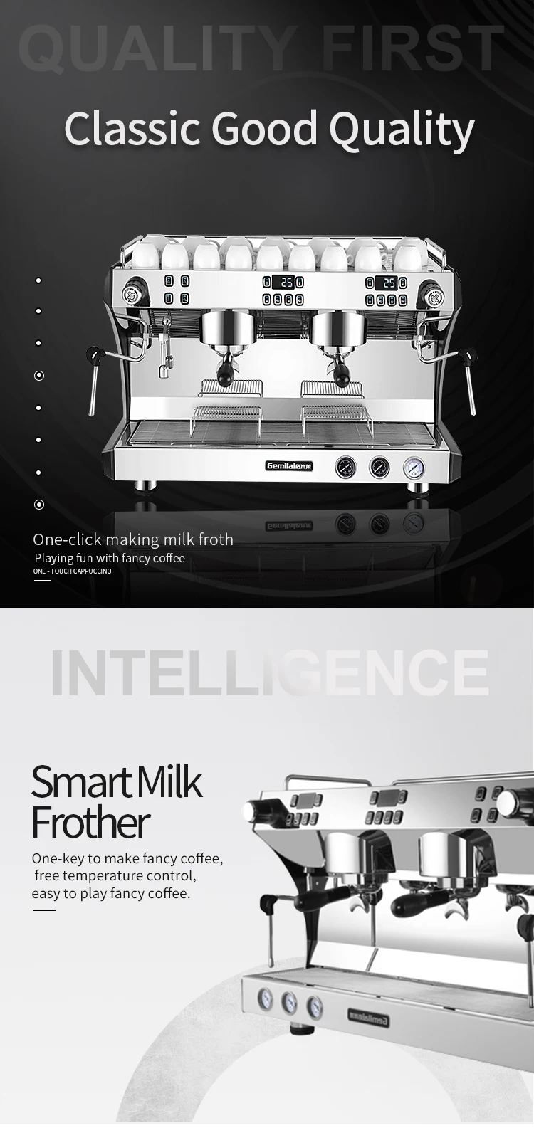 6. Тройные котлы: две 500 мл нагревательные трубки, чтобы сделать температуру более стабильной для приготовления кофе