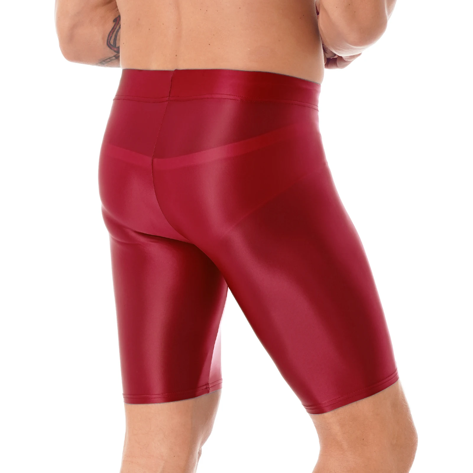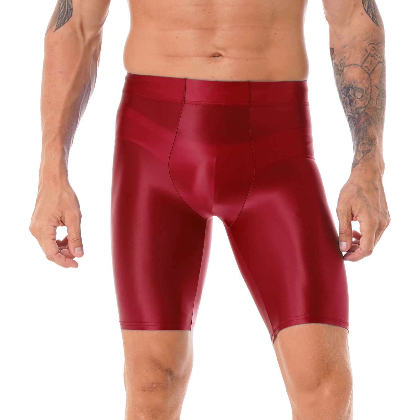 # M-XXL, мужские глянцевые одноцветные шорты, купальники, спортивные, для фитнеса, для тренажерного зала, эластичный пояс, короткие леггинсы