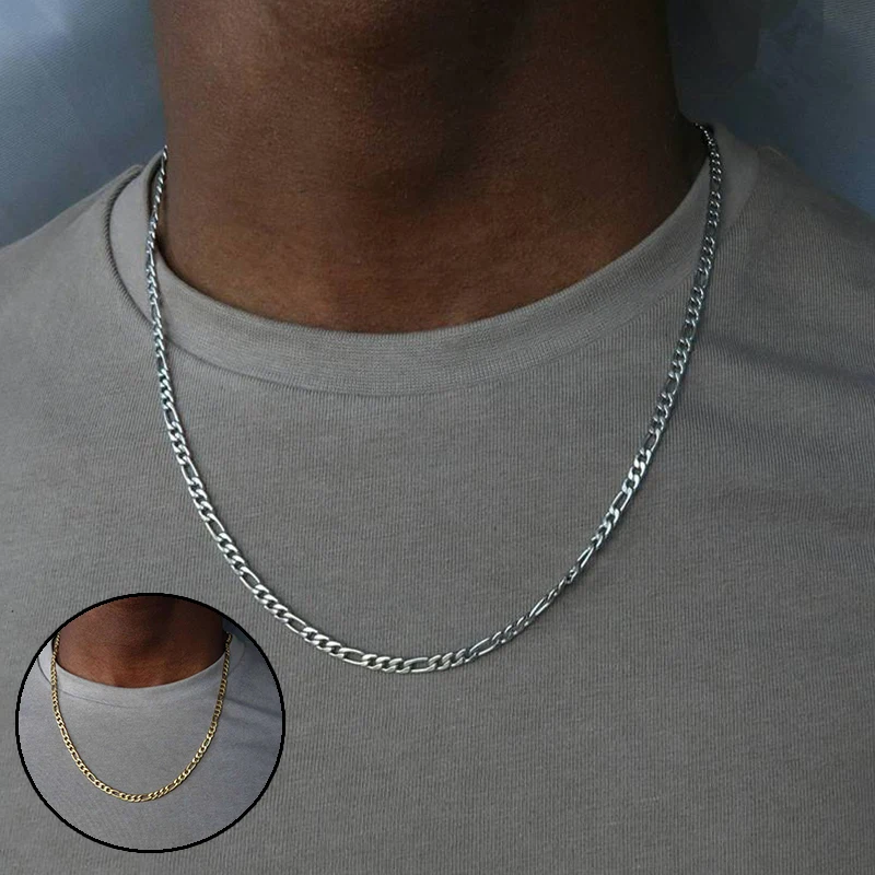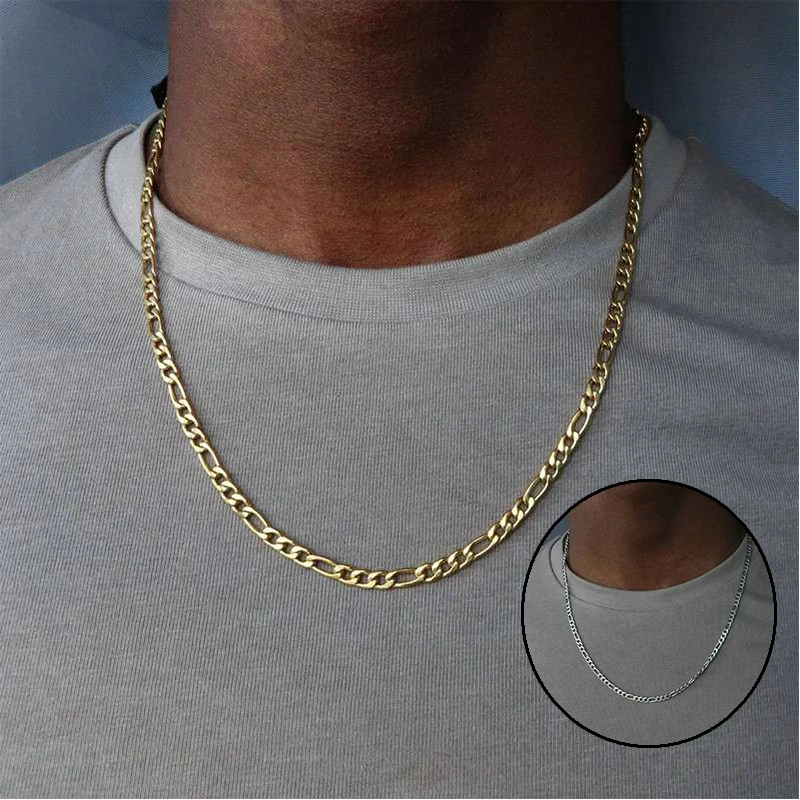 Ожерелье с покрытием Figaro, мужское ожерелье, Мужская цепочка в стиле хип-хоп, позолоченное