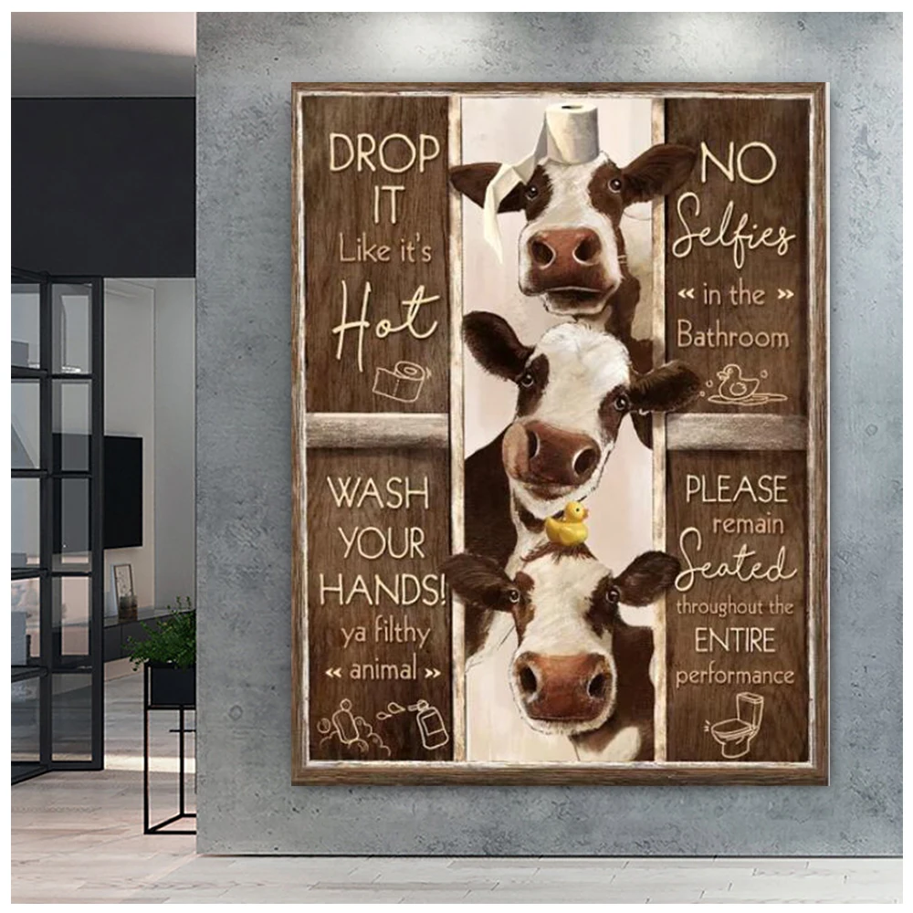 Правила пользования туалетом настенная живопись 5d алмазная картина забавная ванная комната животное корова Ослик Жираф Алмазная вышивка мозаика картина домашний декор