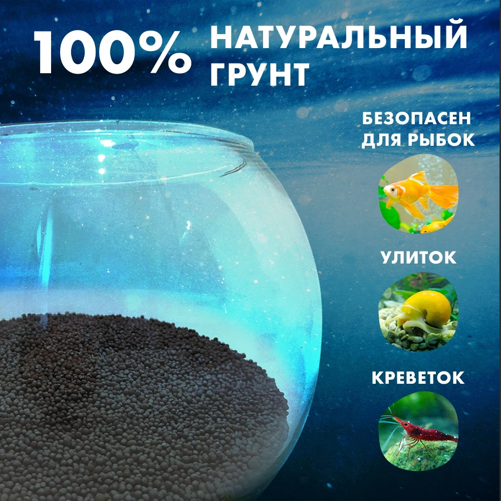 Perfectly harmonizes with the green and other palettes of colors of aquarium residents. The size of the granules and the density of the proppanta is ideal for planting in it soil-covered plants, such as hemainthus Cuba, elohariququ