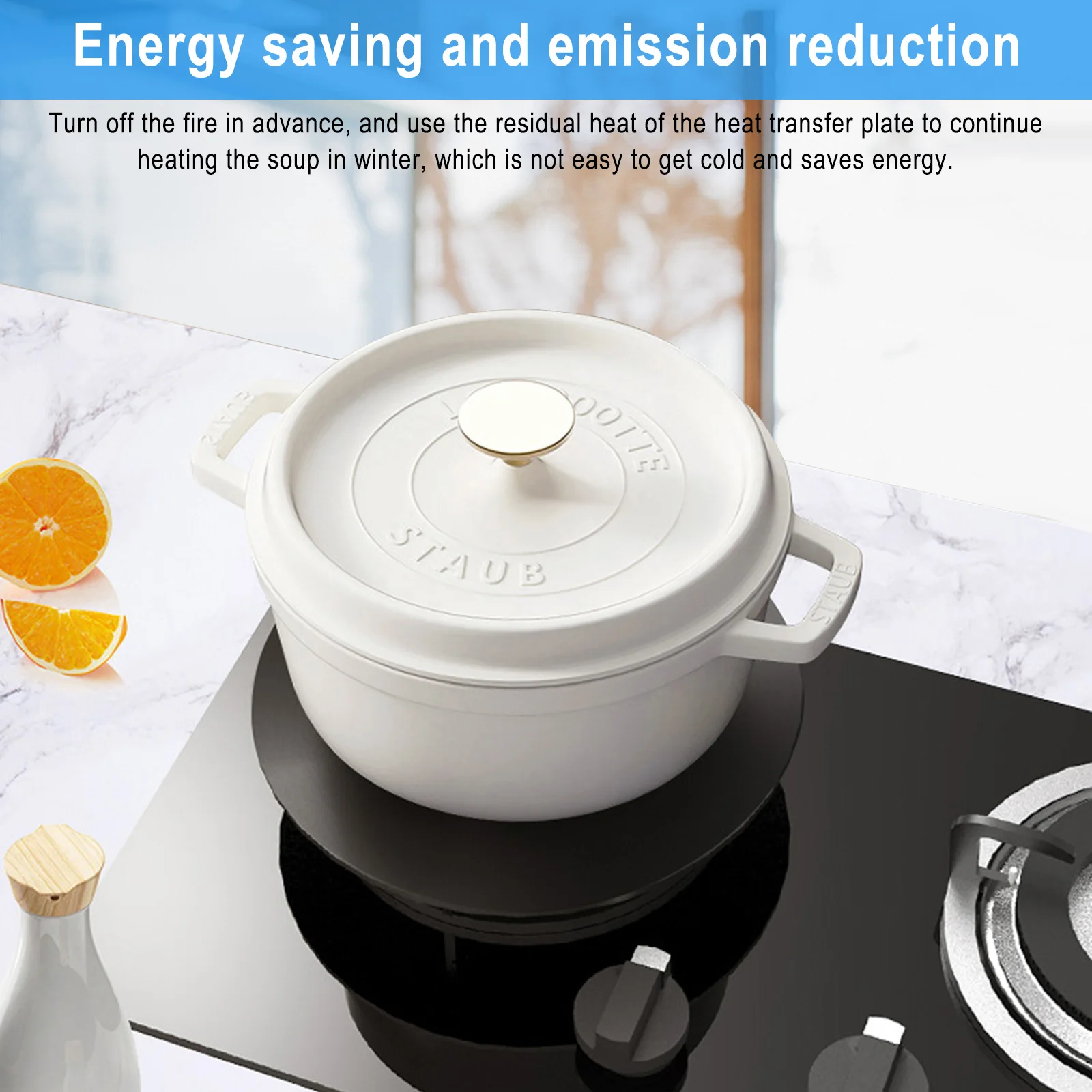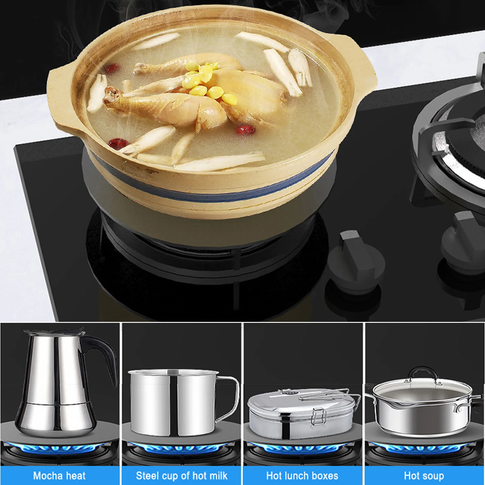 【 Энергосбережение и сохранение тепла 】: теплоотвод плиты может собирать тепло для сохранения тепла, заранее отключать источник огня и продолжать нагревать через тепло теплопроводящей пластины, чтобы суп зимой не стал холодным, энергосберегающим и экологически чистым.