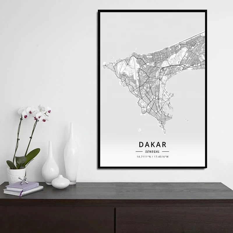 Карта города черный и белый Принт настенная живопись холст скандинавский постер декор для гостиной дома