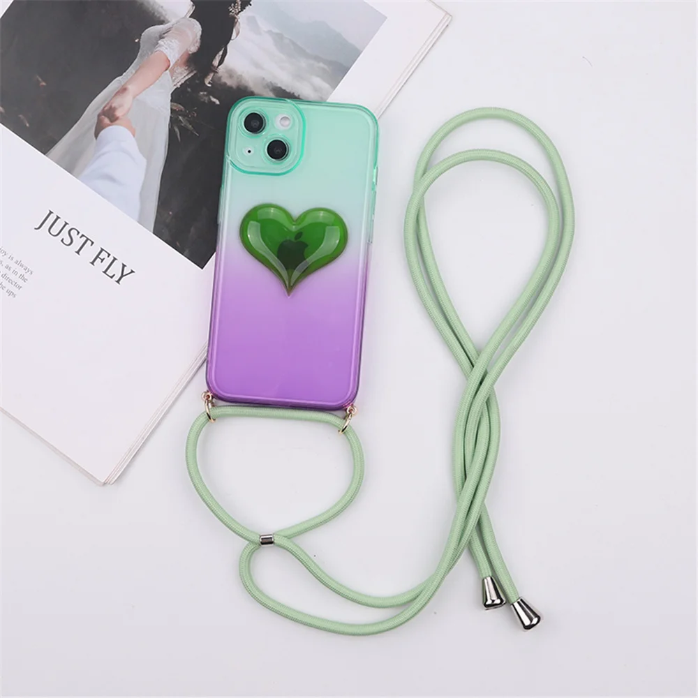 Прозрачный чехол в форме сердца для iPhone, совместим с моделями 13, 11 и 12 Pro max, роскошный, с ожерельем и 3D градиентом