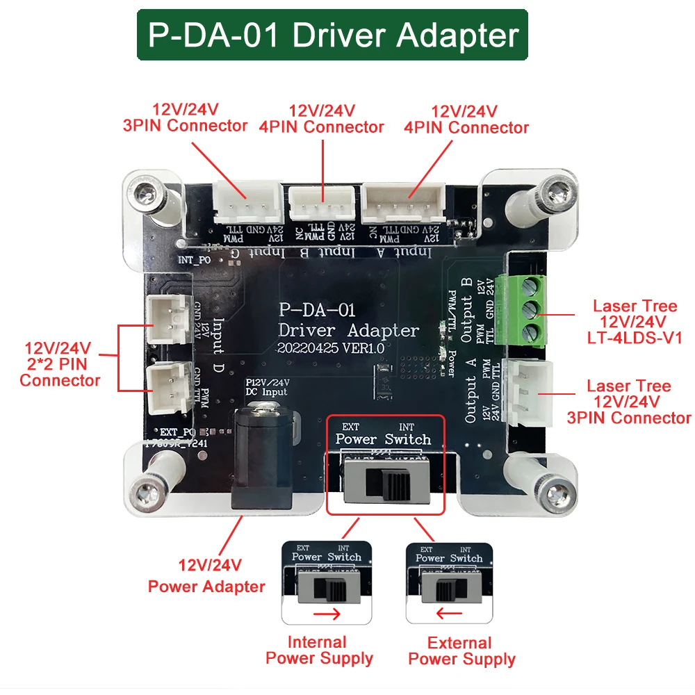 Примечание: Пожалуйста, убедитесь, что ваш гравировальный станок обеспечивает не менее 24 В 4A источник питания. Если нет, пожалуйста, выберите LT-4LDS-V1-Kit A.