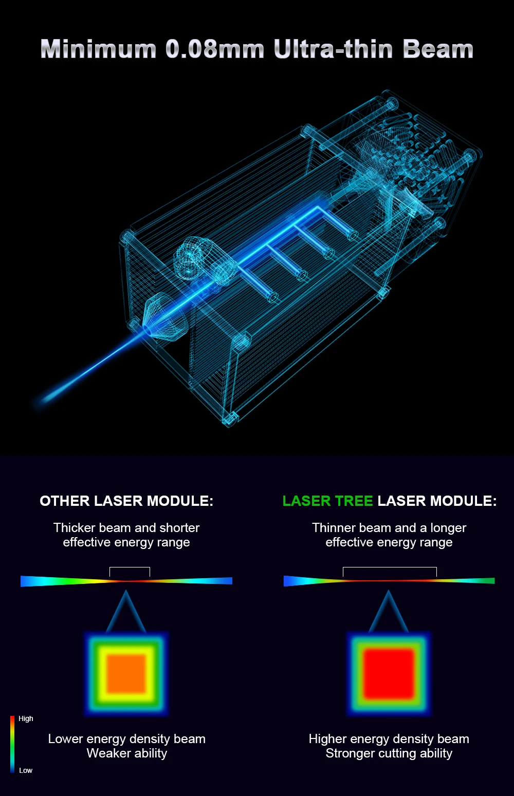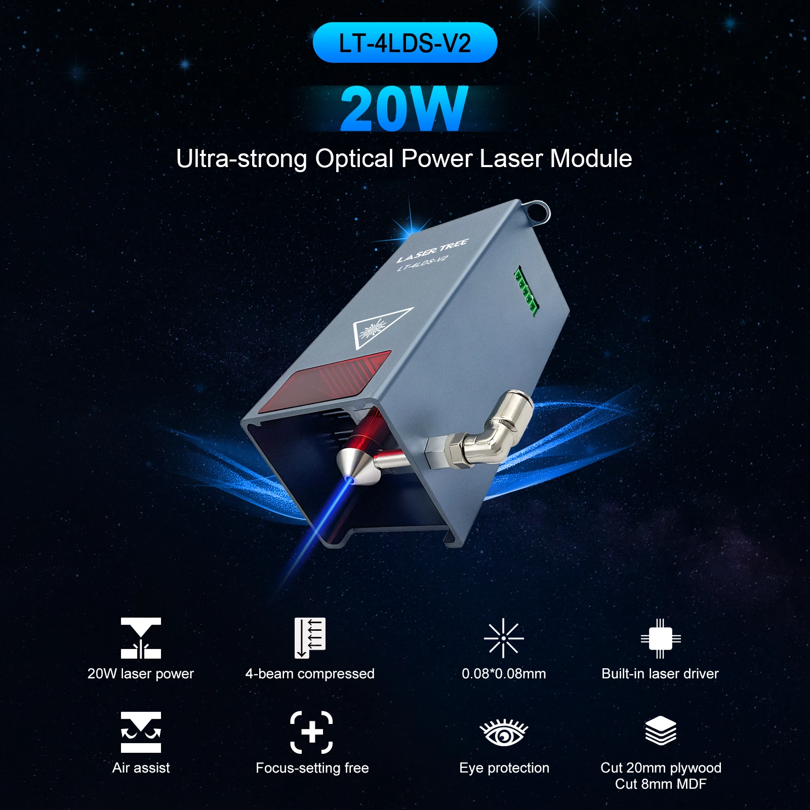 1. Модуль оптической мощности 20 Вт является самой мощной синей лазерной головкой на рынке.