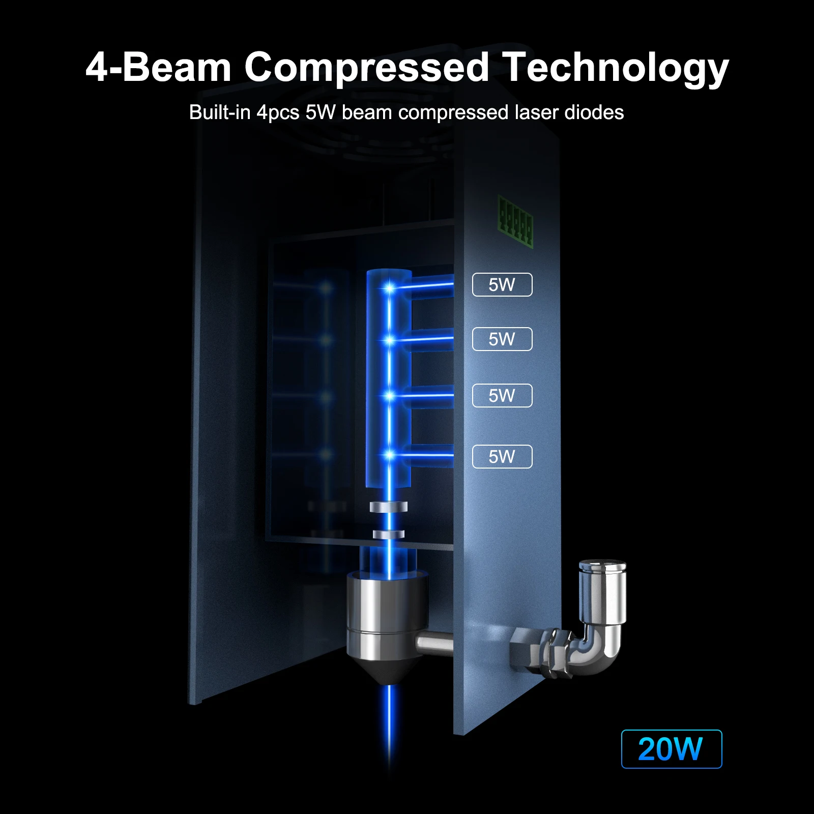 ▶4-лучевая технология сжатия, встроенный 4 шт 5 Вт Луч сжатого лазерного диода