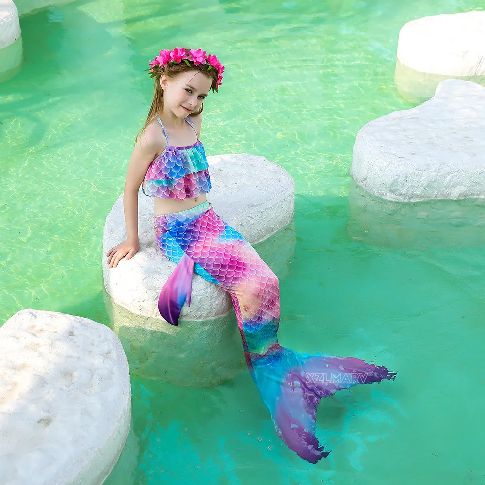 Детский купальный костюм Русалочки для девочек; Костюм Русалочки; Детский пляжный купальник бикини для костюмированной вечеринки