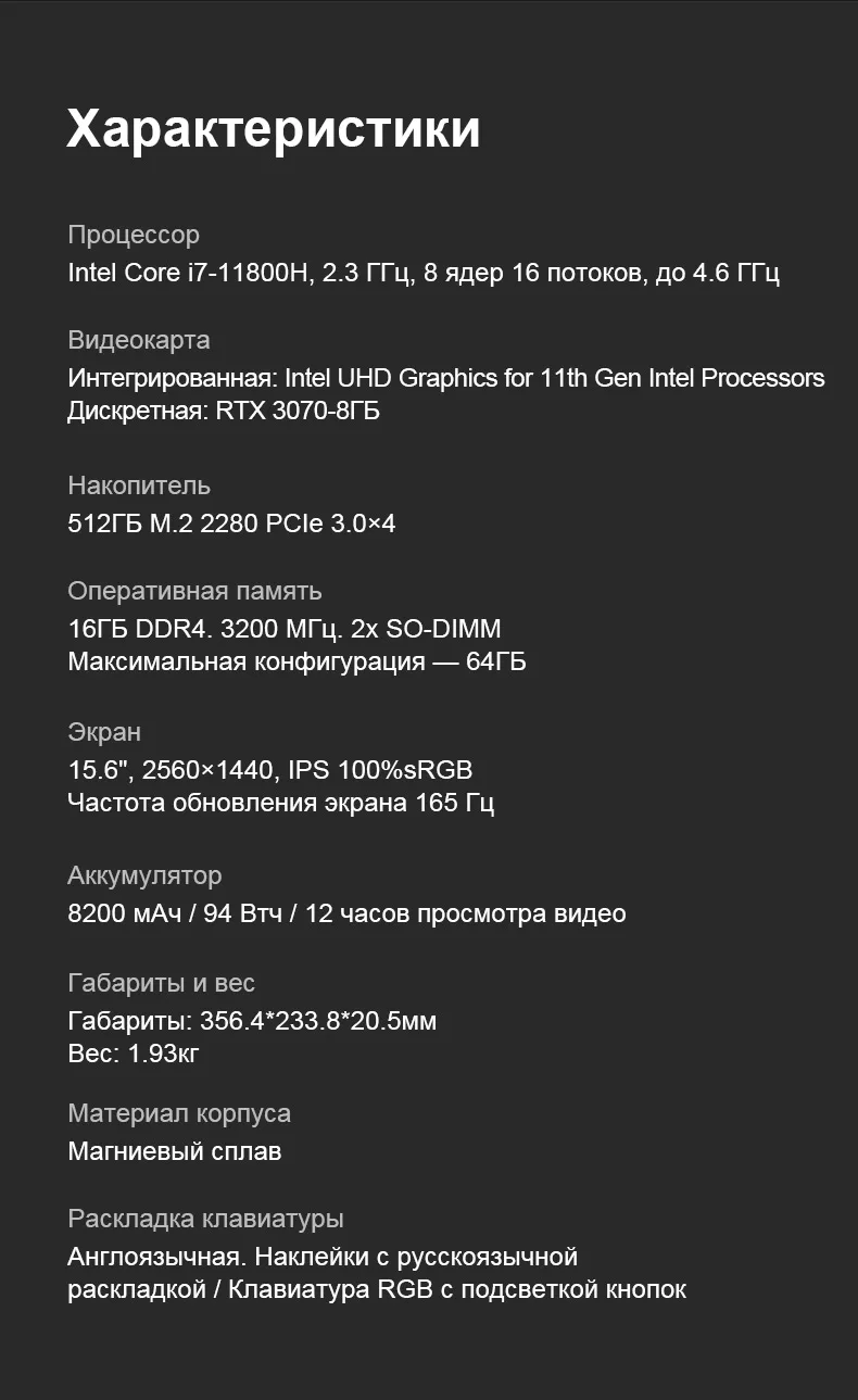 Характеристики