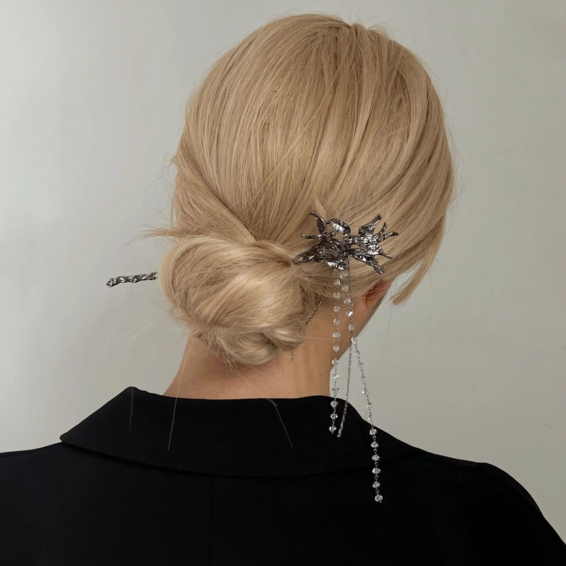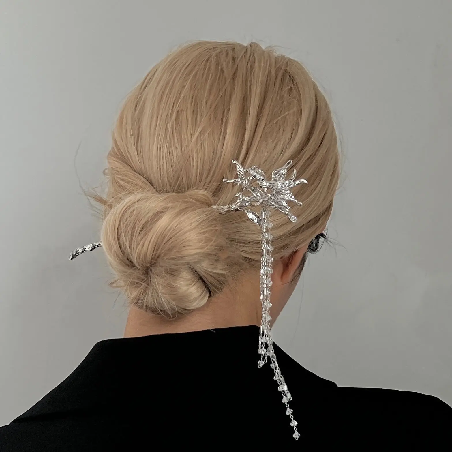 Длинная заколка для волос с кисточками, Необычные ветви, винтажные металлические палочки для волос, текстура для волос, аксессуары для волос для женщин