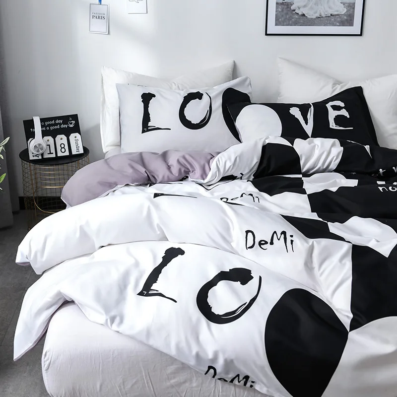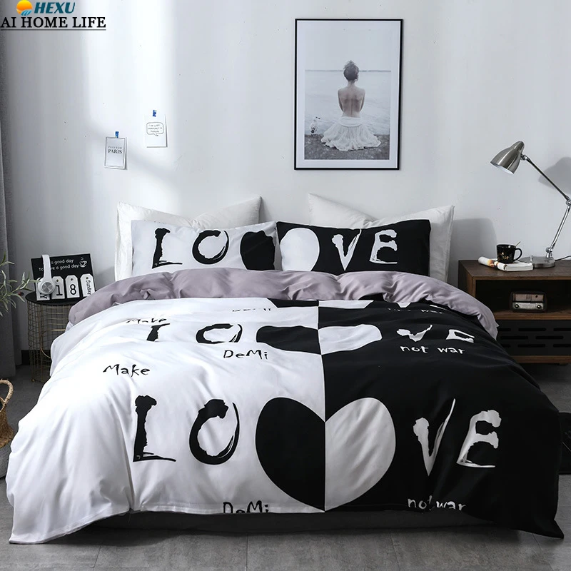 Набор постельного белья для пары, набор постельного белья King Queen, черный и белый, с сердечком, пододеяльник, наволочка, наволочка для влюбленных, одеяло, чехлы, 3 шт., покрывало для кровати