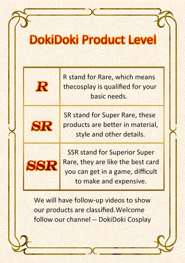 Этот косплей предназначен для presale и обычно занимает 3-6 месяцев для производства. Вы можете отменить свой заказ и получить полный возврат средств в любое время перед отправкой.