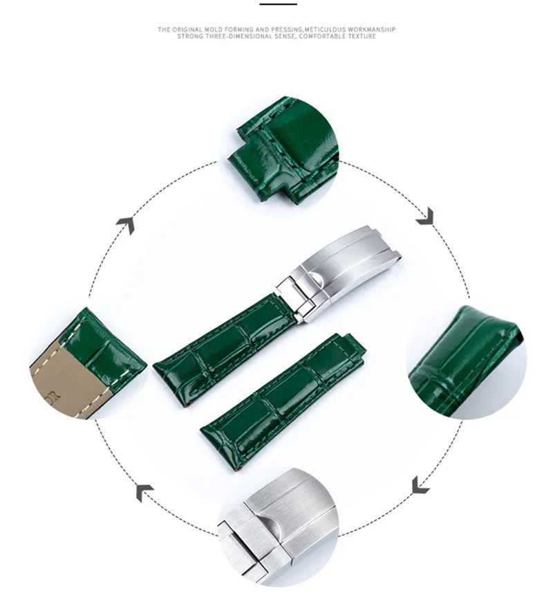 20 мм плоский высококачественный ремешок для часов из натуральной кожи, подходит для часов, часов DAYTONA GMT Yacht-Master