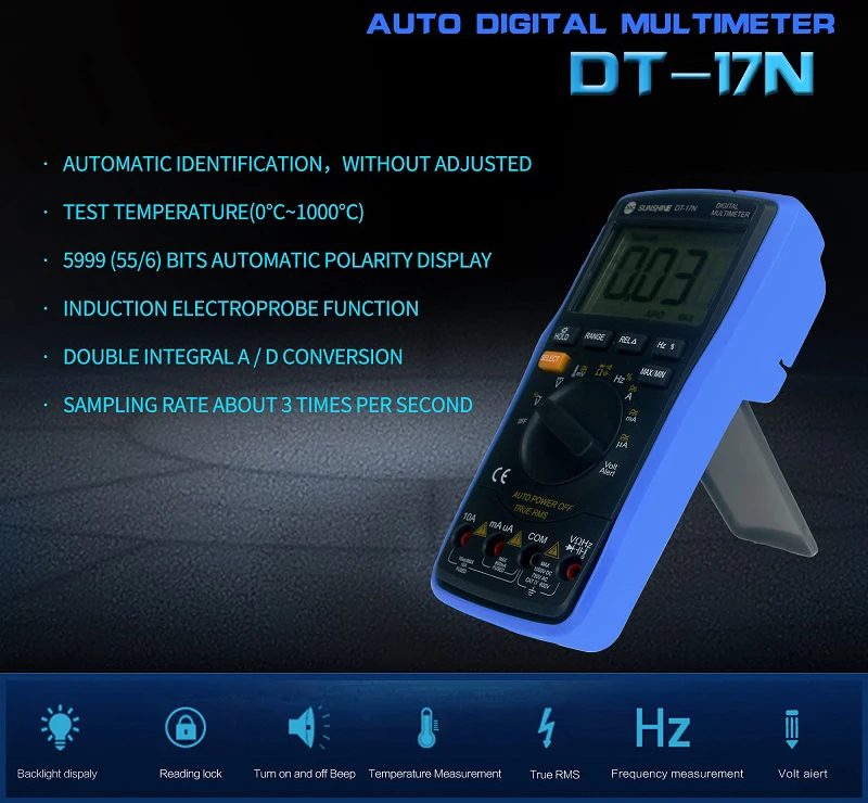 Эта серия инструментов может использоваться для измерения напряжения постоянного тока и напряжения переменного тока постоянного тока и сопротивления переменного тока, емкостного диода, температуры, проверки ВКЛ-ВЫКЛ. Истинное измерение RMS, светодиодный индикатор высокого напряжения и параметры частоты являются превосходным инструментом производительности, является идеальным инструментом для лаборатории, фабрики, радио-энтузиастов