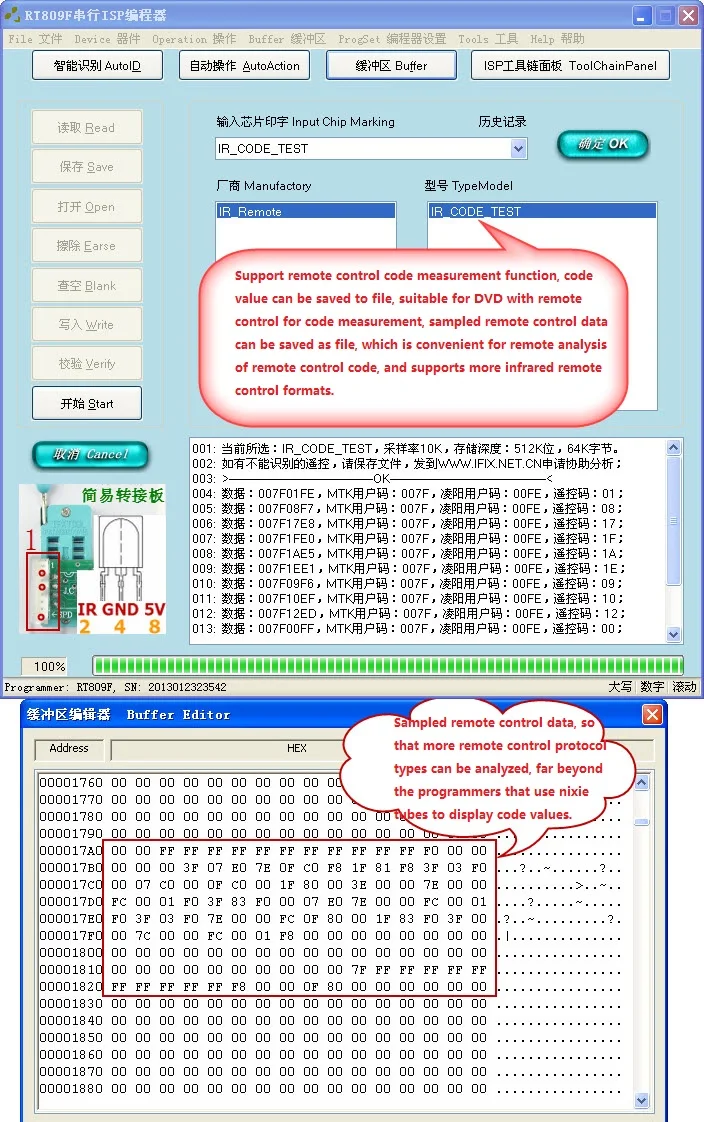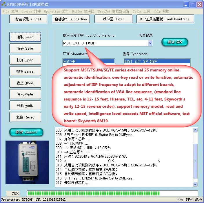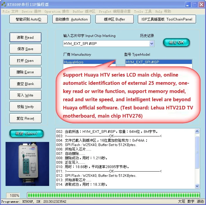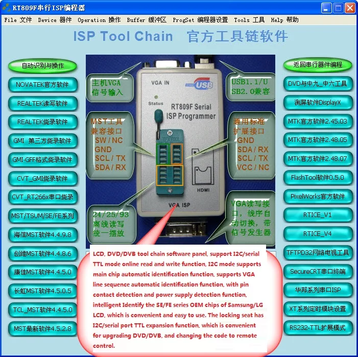 11) Поддержка чтения и записи прошивки ЖК-дисплея и материнской платы ТВ онлайн и вне линии. Раствор чипсета, вы можете использовать официальное ISP программного обеспечения или третьей вечерние программного обеспечения, принимайте во внимание функции целостности и инструкция удобство в использовании.