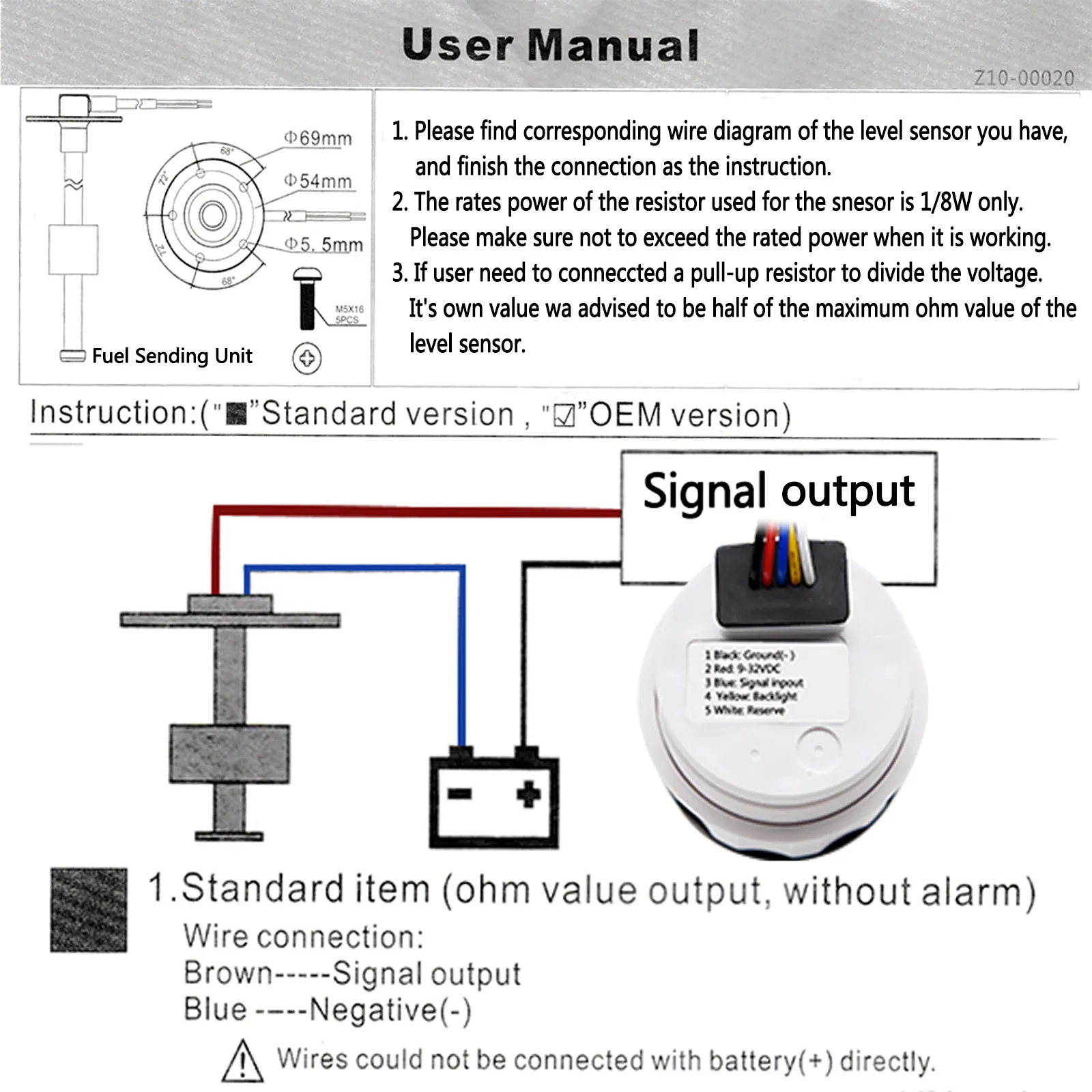 -Датчик уровня подходит для дизельного и бензинового двигателя