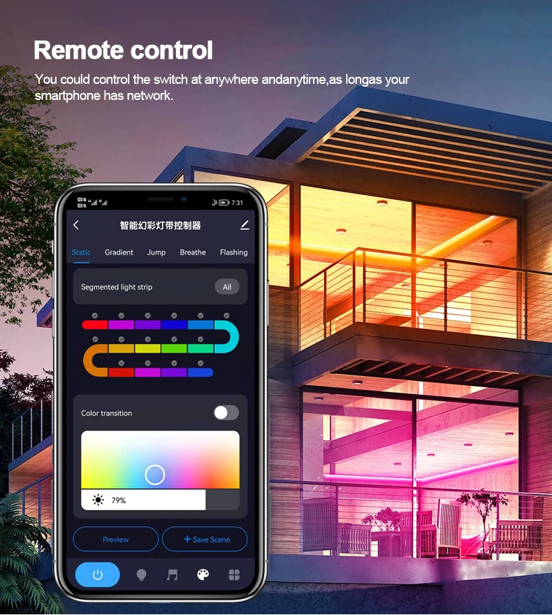 【Changing】выразите себя и сделайте свое пространство более креативным с помощью смарт-светодиодной ленты. Выберите из 16 миллионов цветов и оттенков белого, чтобы мгновенно изменить внешний вид и атмосферу вашей комнаты. Управляйте удаленно с помощью вашего умного устройства, создавайте индивидуальные сцены и раскрывайте свое творчество. Встретить ваши вечерние, читать, светильник для отдыха.