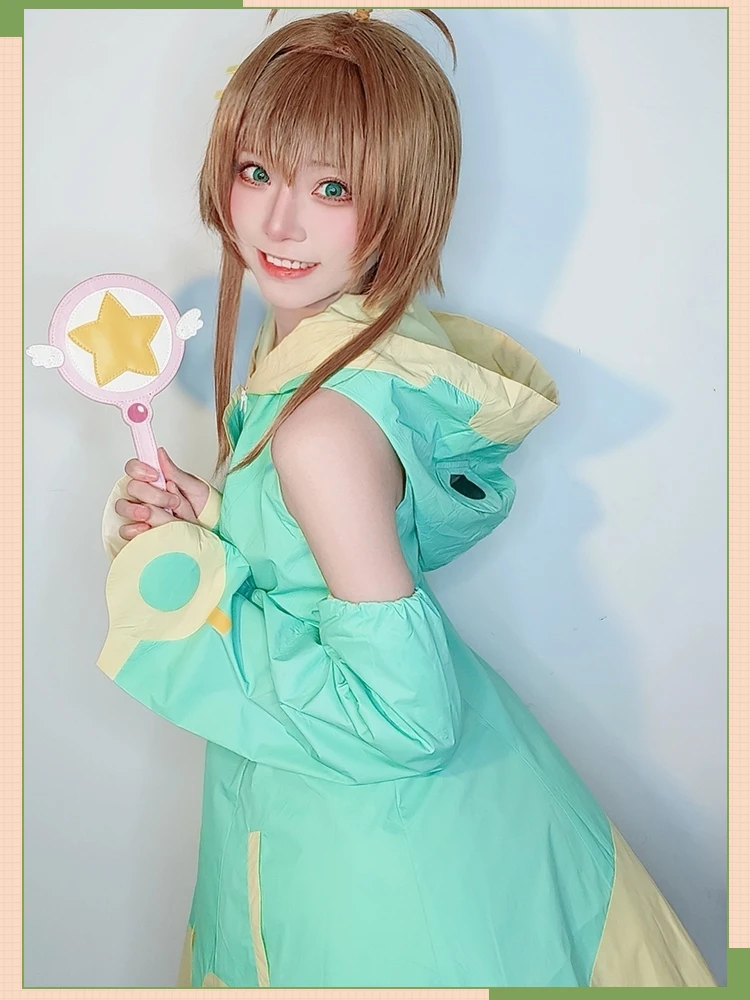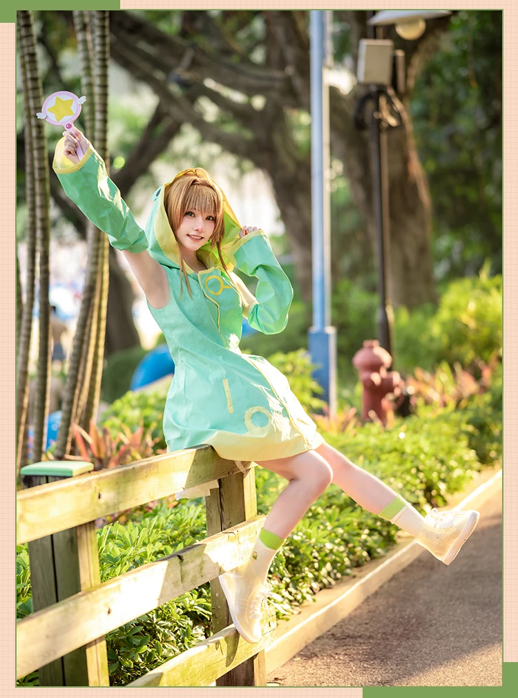 Cardcaptor Sakura Kinomoto Sakura Косплей Костюм прозрачная карта лягушка водонепроницаемые женские костюмы на Хэллоуин Вэнь плащ