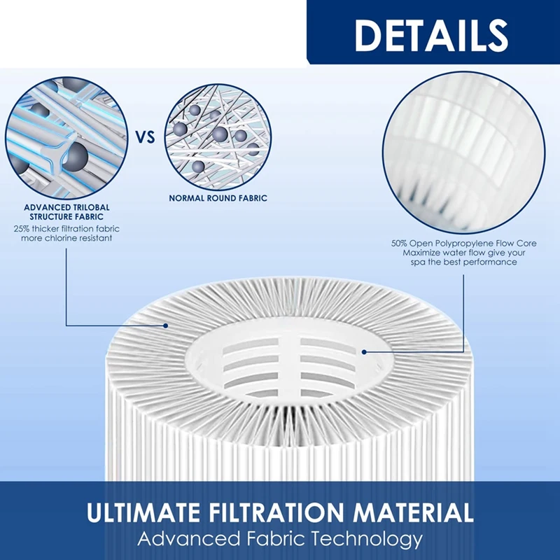 [Безопасность] фильтр обеспечивает безопасную и чистую очищенную воду, чтобы воодушевить Высочайшее чувство счастья. Наслаждайтесь вашим уникальным досугом. Фильтрующая среда изготовлена из полиэфирной ткани PP, которая обладает хорошими механическими свойствами и солнечными свойствами, высокой термостойкостью и не подвержена воздействию сильной кислоты.