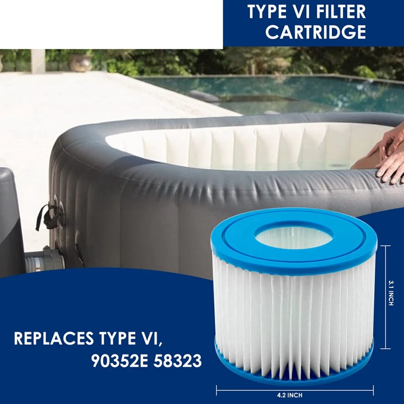 [Сменный картридж типа VI]: фильтрующие картриджи типа VI изготовлены из легкой в чистке и жесткой лавсановой бумаги. Для Bestway Lay-Z Spa и для Coleman SaluSpa 90352E фильтра.