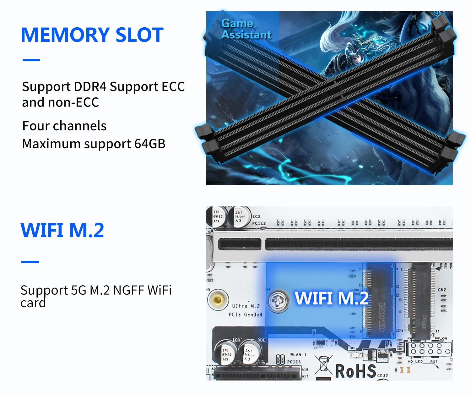 Поддержка типов памяти ed: типы памяти поддерживают Рабочий стол DDR4 и серверную память. (Пожалуйста, используйте Samsung, Kingston, SanDisk, Micron, Hynix и другие международные бренды, другие бренды несовместимы)