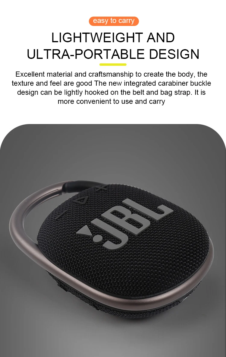 Ультра-портативный дизайн JBL Clip 4 пары идеально сочетаются с новейшими стилями, а его красочные ткани и выразительные детали делают его таким же хорошим, как и кажется.