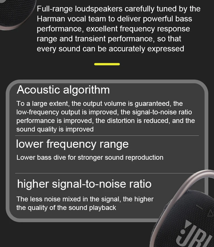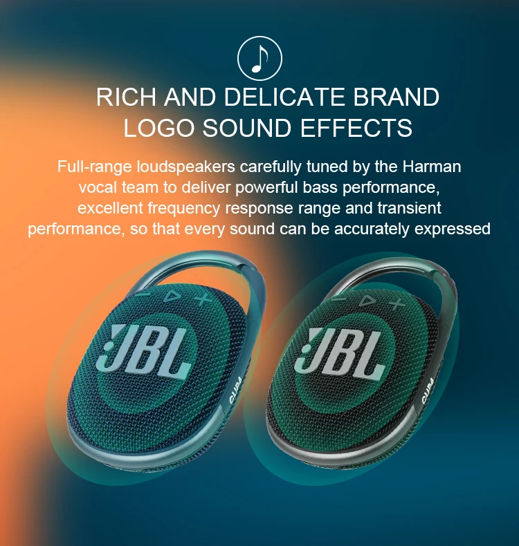 Звук JBL Pro обеспечивает удивительно насыщенные аудио и ударопрочные басы в компактном размере зажима 4.