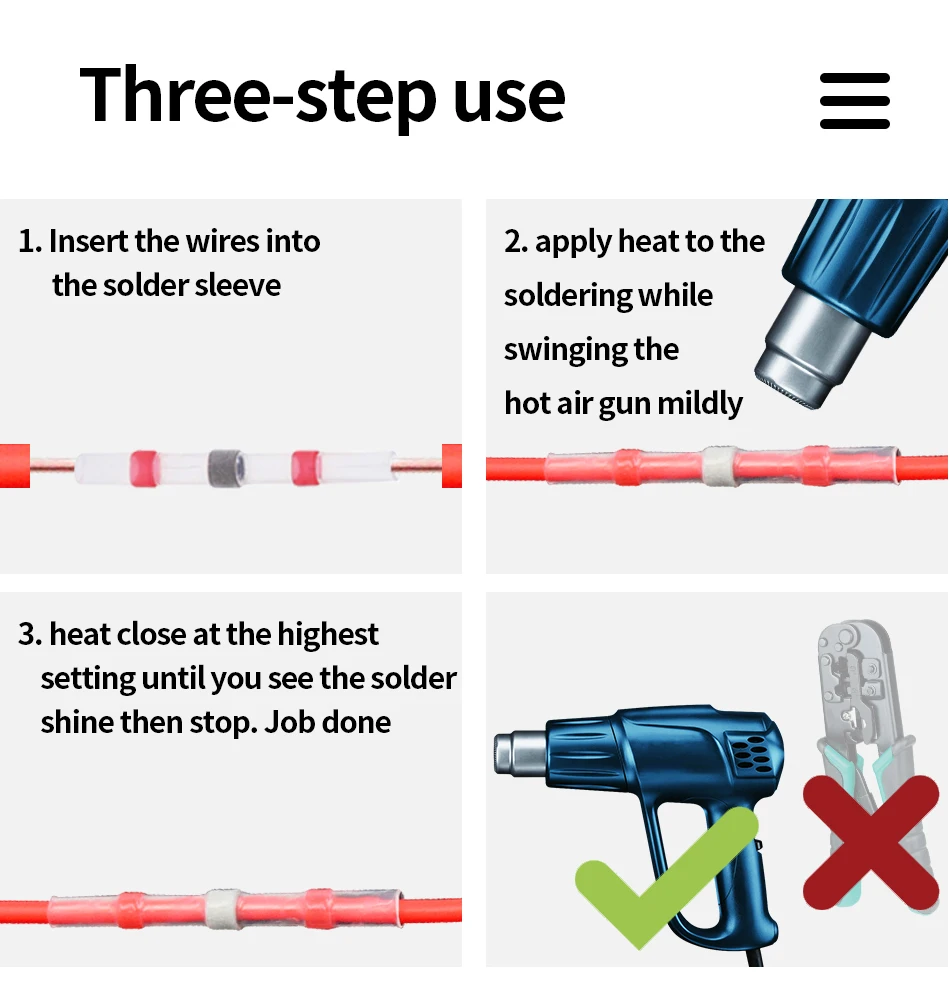 50PCSx спаянные втулки термоусадочные стыковые провода соединители с полиэтиленовым пакетом
