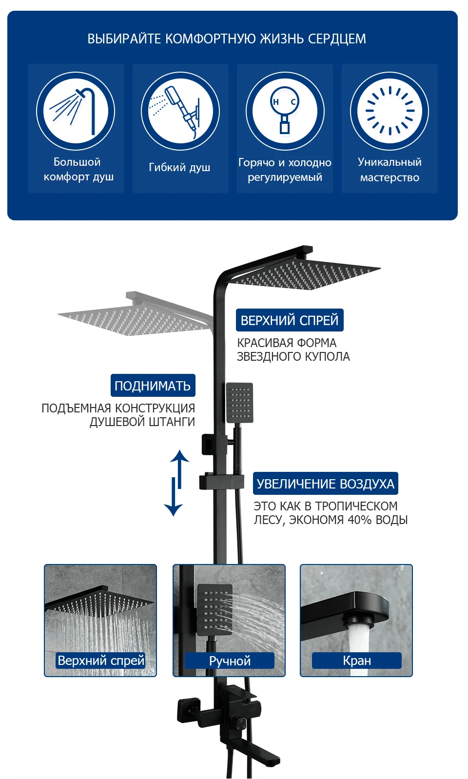 Душевая система Водопад смеситель из латуни с цифровым дисплеем для ванной