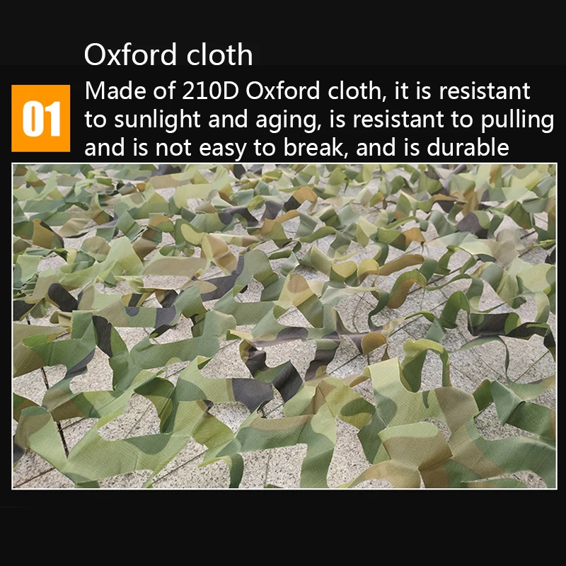 -Военная камуфляжная сетка: в каждом углу есть слинг, который можно легко повесить. Мы пришили и усилили края камуфляжной сетки, чтобы сделать камуфляжную сетку более длинной и удобной в использовании.