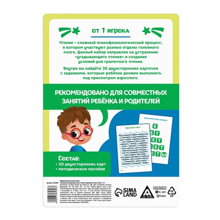 Как играть? Набор направлен на устранение угадывающего чтения и развитие грамотного чтения.