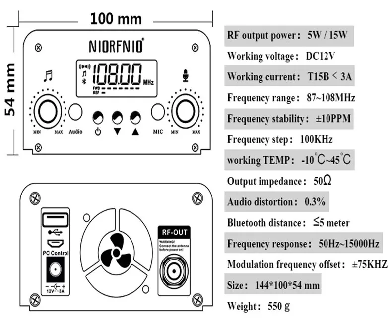 8-уровень RF Регулировка мощности; Trans mi онная частота может быть установлен; Наиболее trans mi онная расстояния 2-3 км (1,2-1.8 mi) на открытом воздухе; Шум вентилятора составляет около 30 децибелов