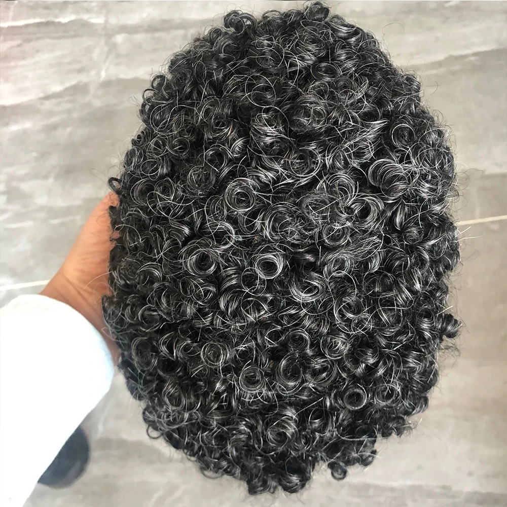 Полностью кружевные человеческие волосы # 1B мужские волнистые с завитками Новая