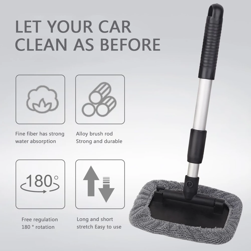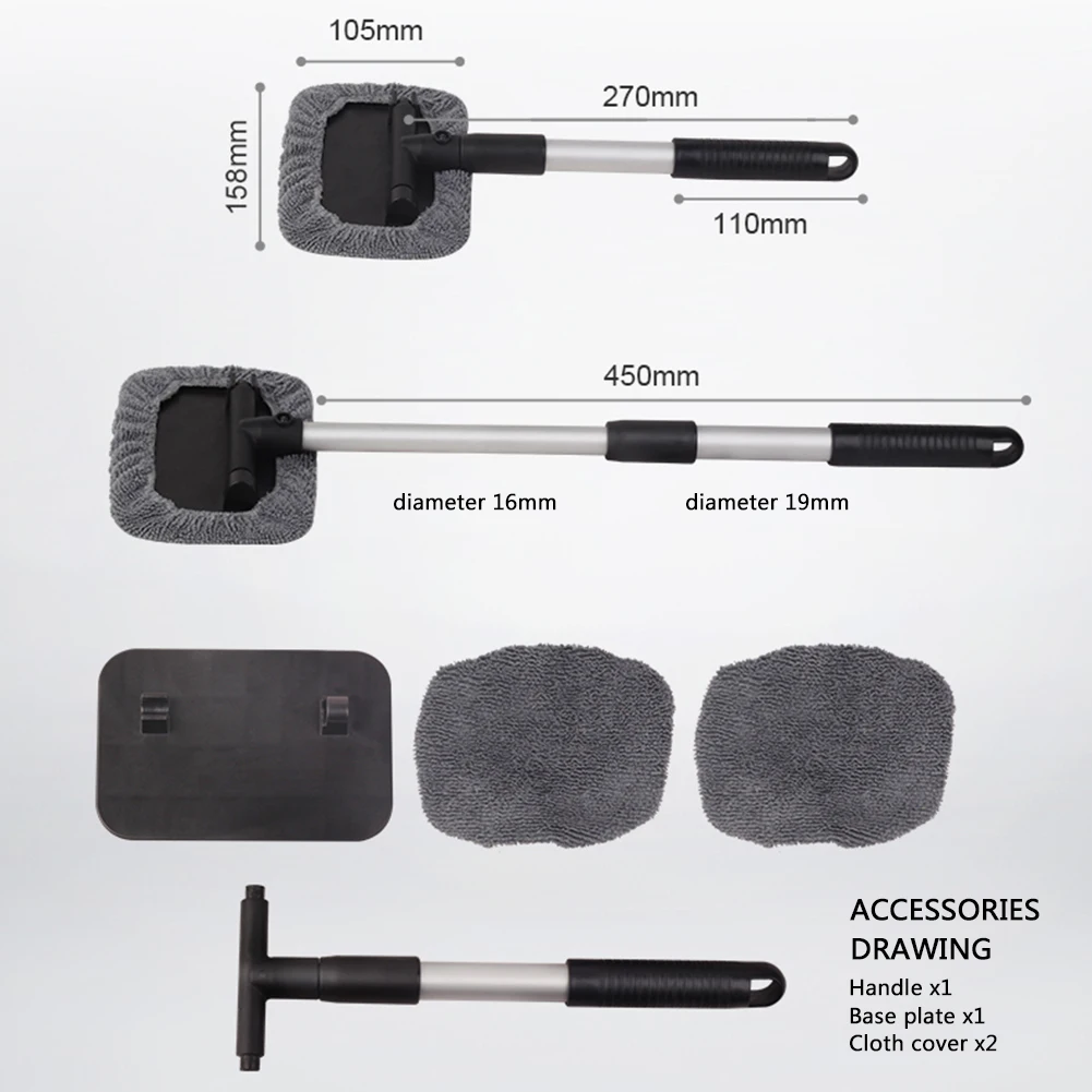 Очиститель ветрового стекла, микро-волоконная очистка окон автомобиля, набор инструментов с выдвижной ручкой + моющаяся многоразовая салфетка для дома, авто интерьера, стеклоочиститель