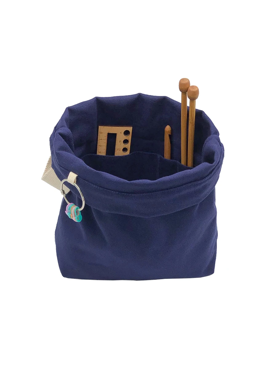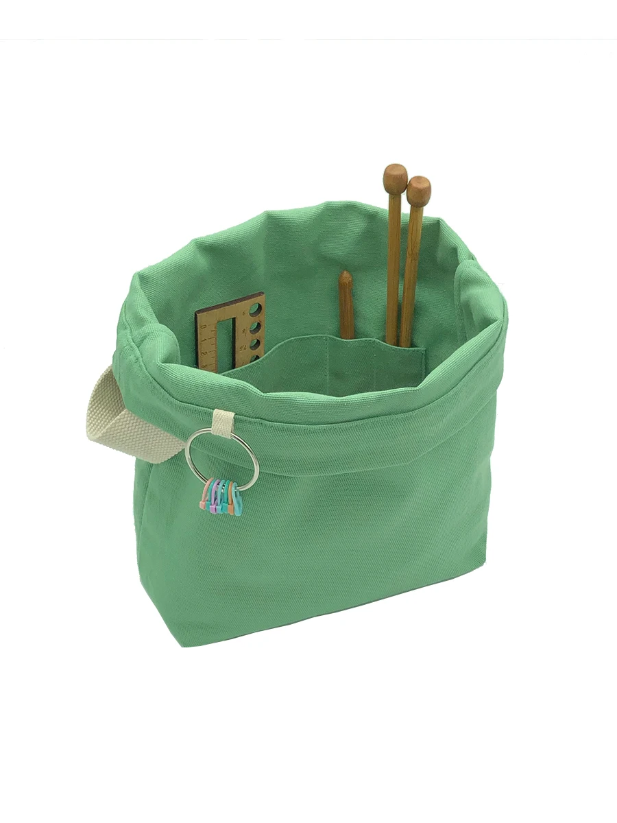 Сумка для вязания из плотного 100 % хлопка с внутренними карманами и разъемным кольцом для маркеров для вязания.