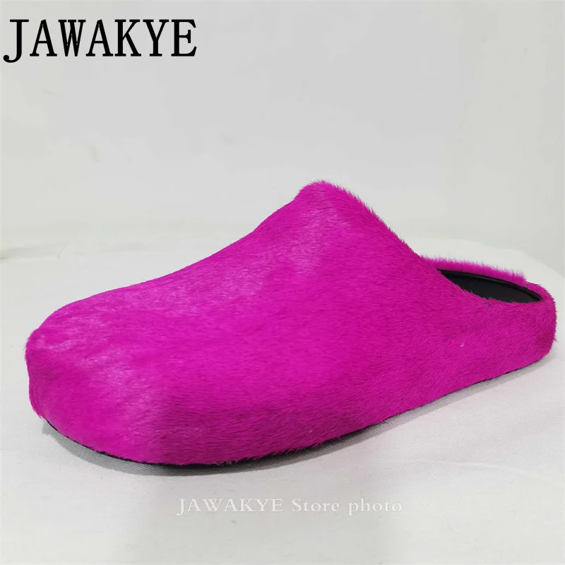 Роскошная обувь из конского волоса; Лидер продаж; Цвет зеленый, розовый, красный; Женские шлёпанцы; Зимние шлёпанцы; Женские брендовые лоферы на плоской подошве; Меховые Тапочки