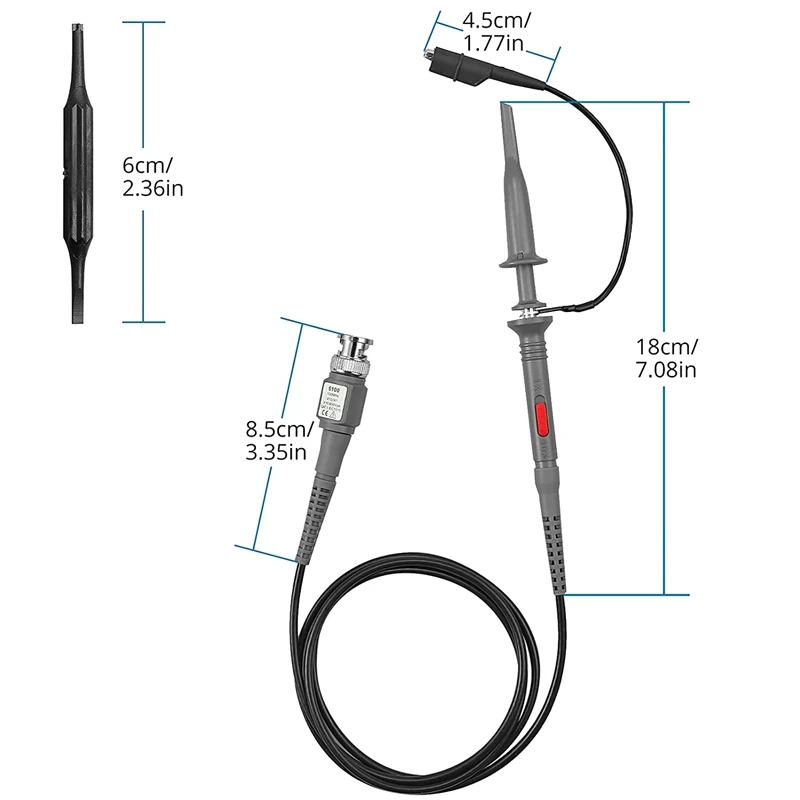 Можно использовать с диапазонами с пропускной способностью до 100 МГц; Универсальный 10:1 зонда осциллографа и 1:1 переключаемая полоса пропускания 100 МГц